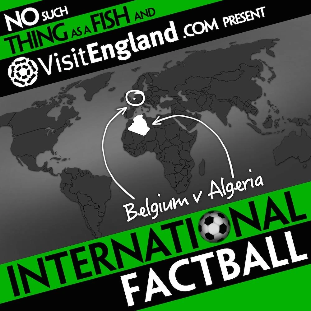 Belgium v Algeria is the 6th episode of International Factball, and the 20th episode of 2014. It features presenters James Harkin, Andrew Hunter Murray, Anna Ptaszynski, and Dan Schreiber, and was recorded at the QI Offices in Covent Garden, London.